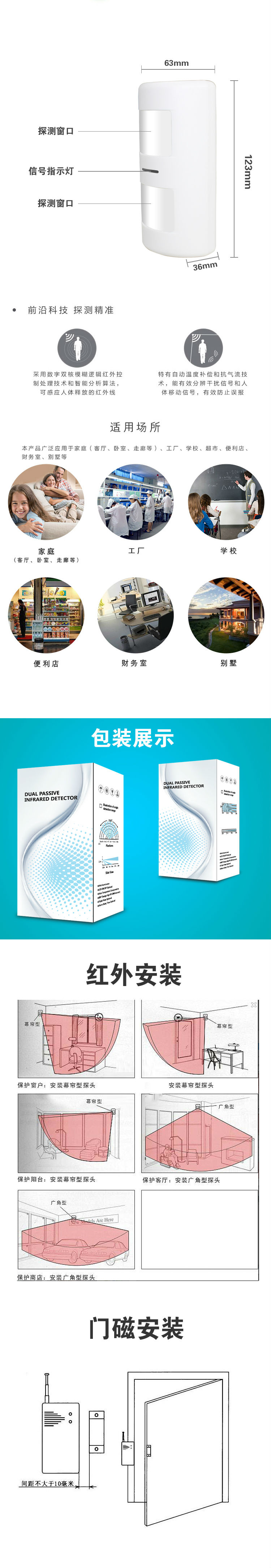 1.双探头,零误报。能准备探测是宠物还是人体进去,双电池 2年超长待机