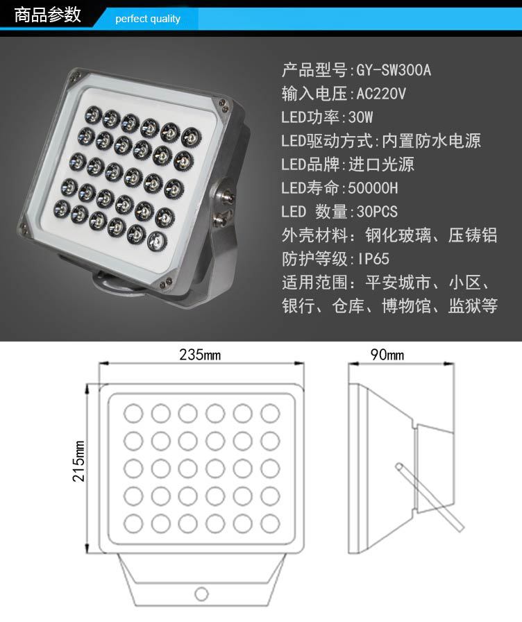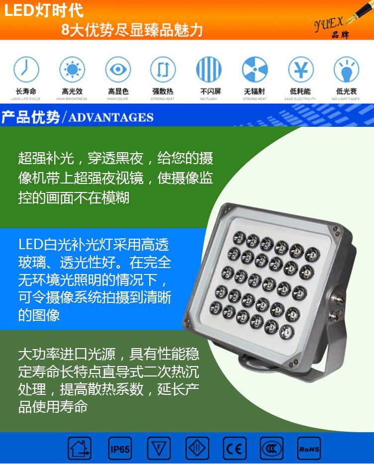 适用范围:平安城市 银行 博物馆 监狱 小区 仓库等室内外视频监控补光
