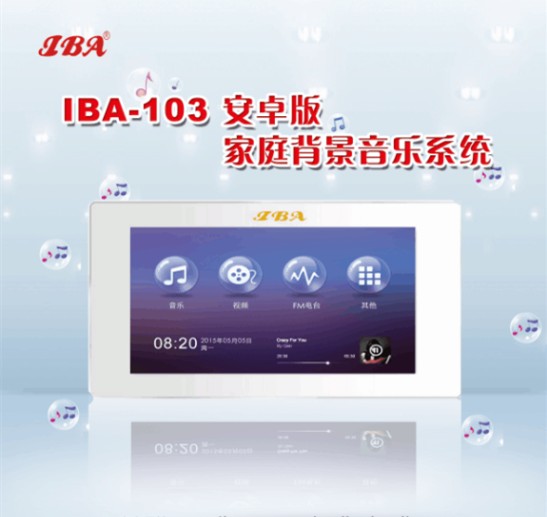IBA-103安卓版家庭背景音乐系统。它可以用苹果或安卓手机进行实时操作,也可以连接到高清视屏进行播放。这款产品内装多种应用软件,是如今最让人熟知的安卓操作系统。它最具特色的地方是用户可以根据需要,自主地创建系统。区域内所有主机都可以用手机客户端播放控制,让用户有了更高的灵活度和空间。IBA-103云音乐、与第三方联动、中英文的切换等足以满足市场多样化的需求。
