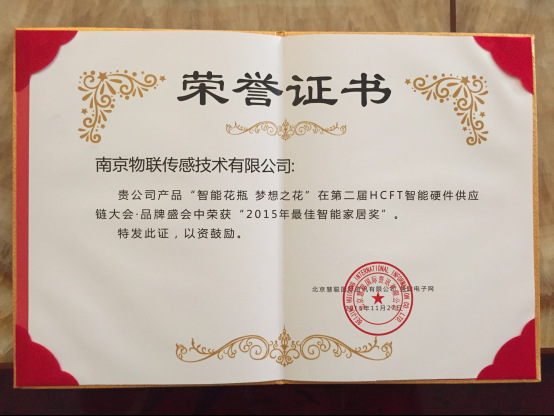 近日,领先的智能家居系统品牌厂商物联传感最新智能家居力作“梦想之花”在第二届HCFT智能硬件供应链大会上获得“2015年最佳智能家居奖”。这是今年梦想之花继获得“2015消费电子行业Leader创新奖趋势设计大奖”之后获得的又一殊荣。
