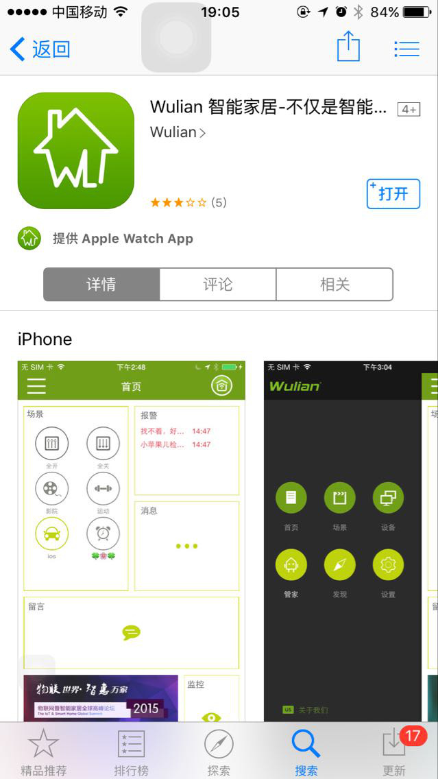 与市场上其他智能家居APP不同,为了增强用户粘性,“Wulian智能家居”支持中、英、西、葡、俄、希伯来语等多国语言,能够适配苹果智能手表Apple Watch,而且还融合了“摇一摇”、“NFC”、“GPS”、 等特色功能,为智能家居提供了更丰富、有趣玩法。如今,最新IOS版的“Wulian智能家居”又革新性地添加一项特色——Widget场景。