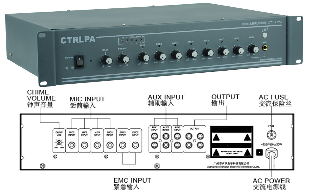 PA2033 8路前置放大器 CT1060U CT1120U带前置六分区合并功放