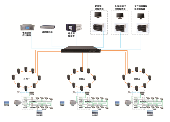 随着国内光伏产业的迅猛发展,大规模的光伏发电站项目在国内开始陆续建设并投入使用。为了解决实时监测了解电站的运行状况,满足上一级系统或电网调度系统的监控需求,是我们首先要解决的问题。光伏电站中涉及到的监控设备种类较多,包括光伏系统相关的光伏组串、巡日装置、汇流装置、逆变器、环境检测仪;安防装置(监控探头、避雷器、报警装置等)、集量装置(电量/电压/电能质量相关计量仪器)、保护装置(高压开关、直流接地)等。光伏电站监控系统主要由逆变器厂商随设备提供,主要从本厂逆变器出发,对电站运行的一些参数进行监测,难以或不能直接控制逆变器的运行状态,亦无法获取电站中的其他设备的信息及控制这些设备,更无法满足电网调度系统对电站的实时监测要求。另外,大型电站均会采用不同厂商的产品,这些厂商的产品彼此无法兼容造成一个个”孤岛”系统,无法形成统一的监控体系。因此,迫切需要一套统一的监控平台,能够对不同厂商、不同类别、不同型号的逆变器及其他设备进行统一的管理,实现对光伏电站完整、统一的实时检测和控制。随着工业以太网的发展,工业以太网这个平台很好的运用到了光伏发电监控系统之中,作为各种设备数据传输的载体。