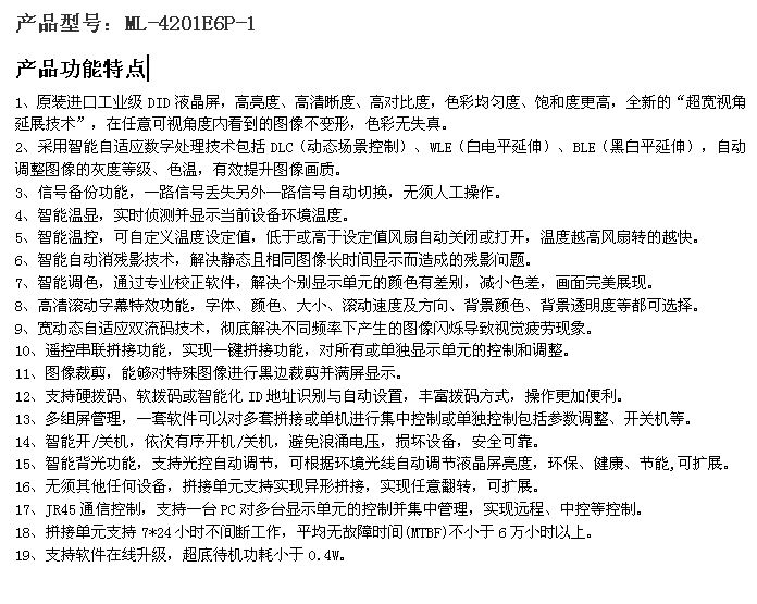液晶拼接屏、液晶拼接墙、液晶监视器、触摸一体机、广告一体机、图像拼接处理器等产品的生产加工销售