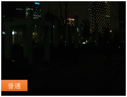 下面是在路灯未开启的小区内,夜晚同一时间普通相机与九安光电星光级低照相机的效果对比。