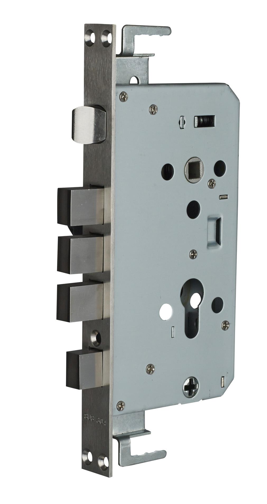 2:斜舌均采用304#不锈钢精密铸造,并采用斜舌球面设计,有效减小冲击力(实现关门缓冲)从而增加机械应力,大幅提高使用寿命。