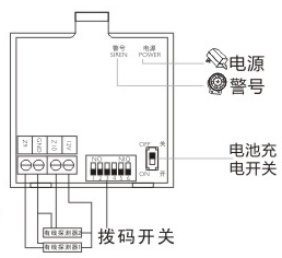 3. 两个有线防区Z9-Z10防区,有线防区可选择短路报警或开路报警(NO或NC)。