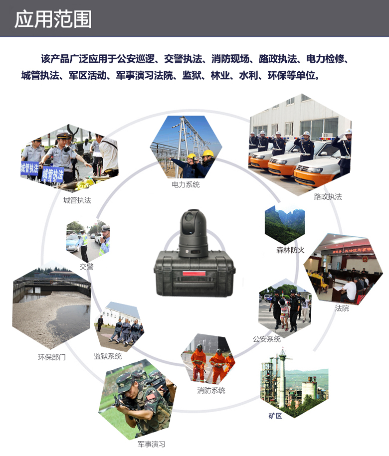 SF-BK-4G高清布控球是一款功能全面、携带方便的无线视频应急指挥一体化产品,设备集成度高,内置高性能锂电池组,具备防水等特性,可满足临时布控和快速安装的特殊要求。该产品采用一体化云台,360度全向转动无死角。支持4G/WIFI网络传输,TDD-LTE/FDD-LTE双网兼容(可向下兼容WCDMA/EVDO),支持移动、联通、电信三大运营商网络,网络适应性高。传输图像清晰流畅,图像分辨率最高可达1080P,轻松实现定位、应急、视频、云台操作、双向对讲等功能。支持红外夜视功能,轻松实现全天候布控的要求。执行任务时可将设备临时安装在需要监控的位置或车辆上,任务结束将设备拆下,主要应用于公安、交警、消防、路政、电力、城管、军区、法院、监狱、林业、水利、环保等单位。