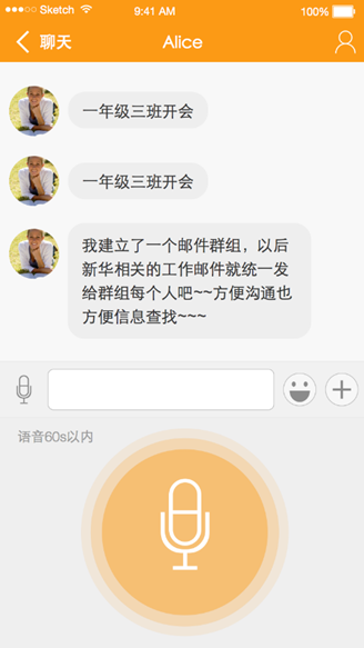 交流功能主要供用户之间采用类微信的方式沟通交流信息,它是一种交互性很强且很实用的功能,支持文字、语音、图片,支持分组聊天,使幼师和家长之间的信息传达更直观,内容更丰富。