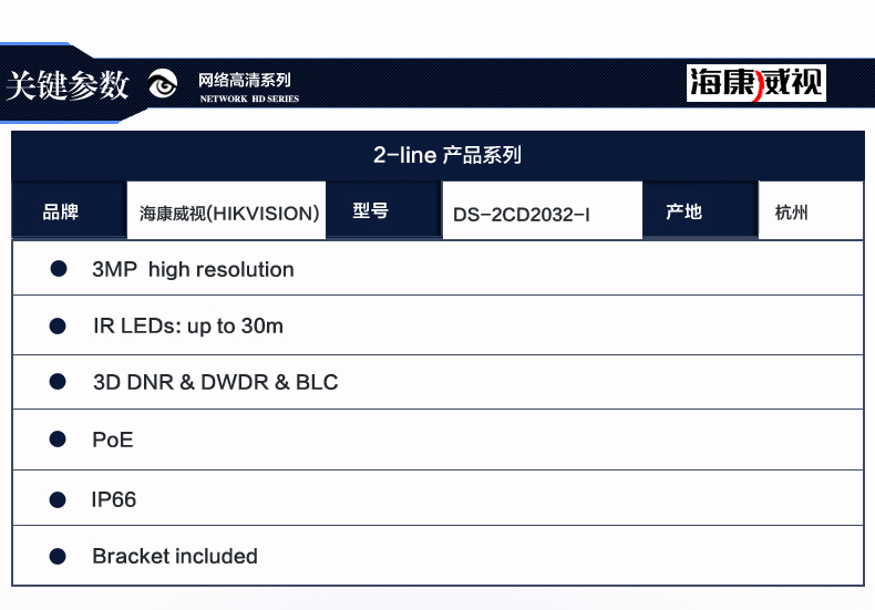 海康威视高清网络摄像机监控摄像头ip camera英文机
