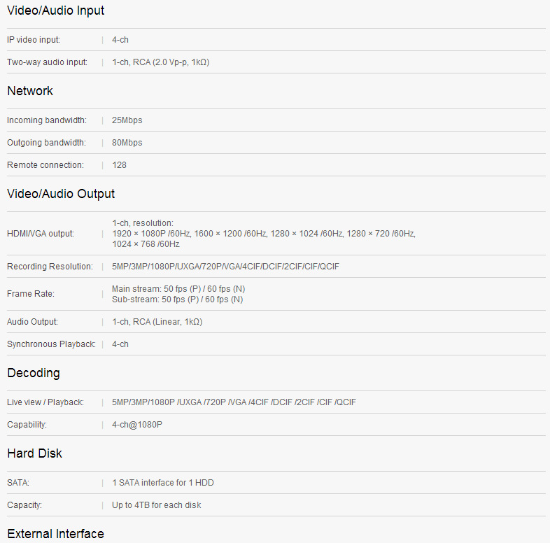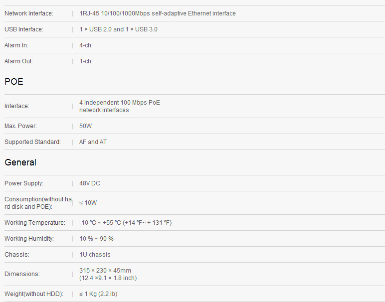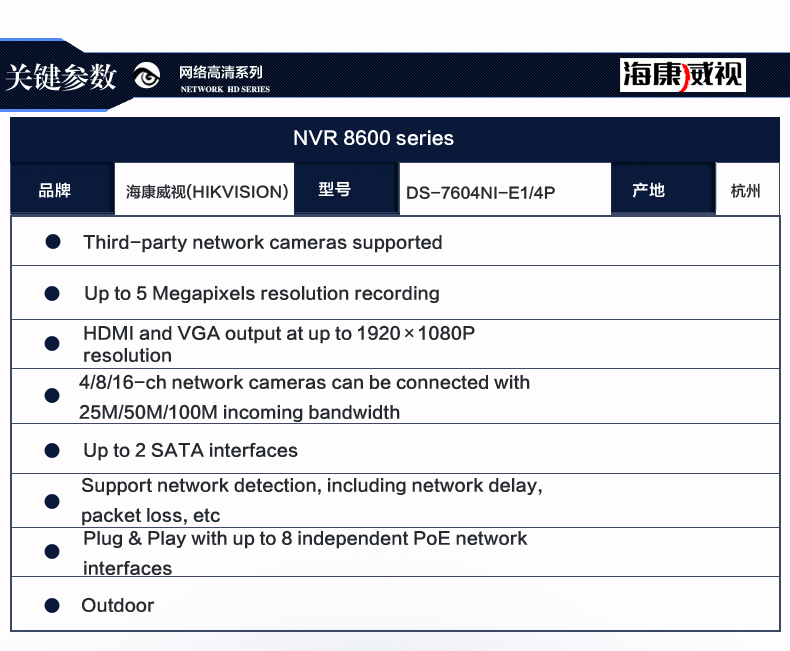 海康威视监控主机网络硬盘录像机4路NVR英文机DS-7604NI-E1/4P