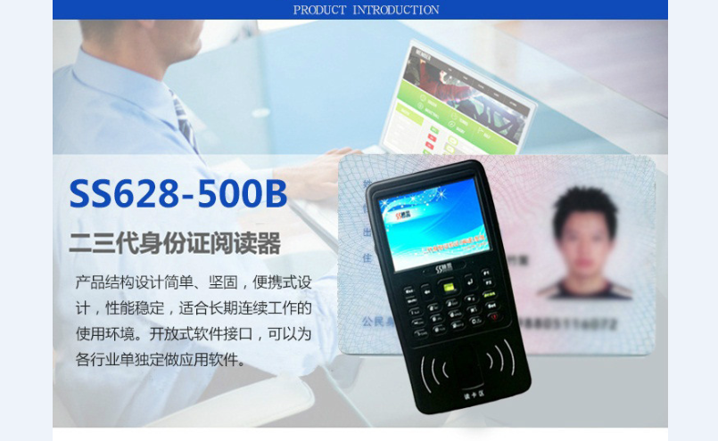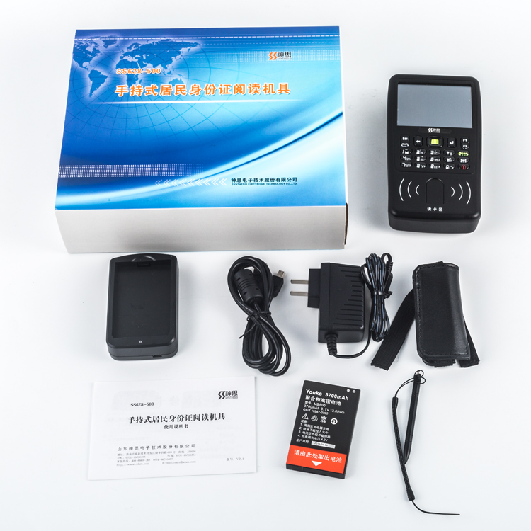 神思SS628-500B手持式身份证识别仪通过读取二代身份证信息辨别身份证真伪,自动识别黑名单(选配),并给出报警信号,亦可查询全部历史记录进行比对,开放式软件接口,可以为各行业单独定做应用软件。拥有自主知识产权、可以快速读取姓名、性别、民族、出生、住址、身份证号码、签发机关及年限等信息、验证、上传或存档卡内信息。