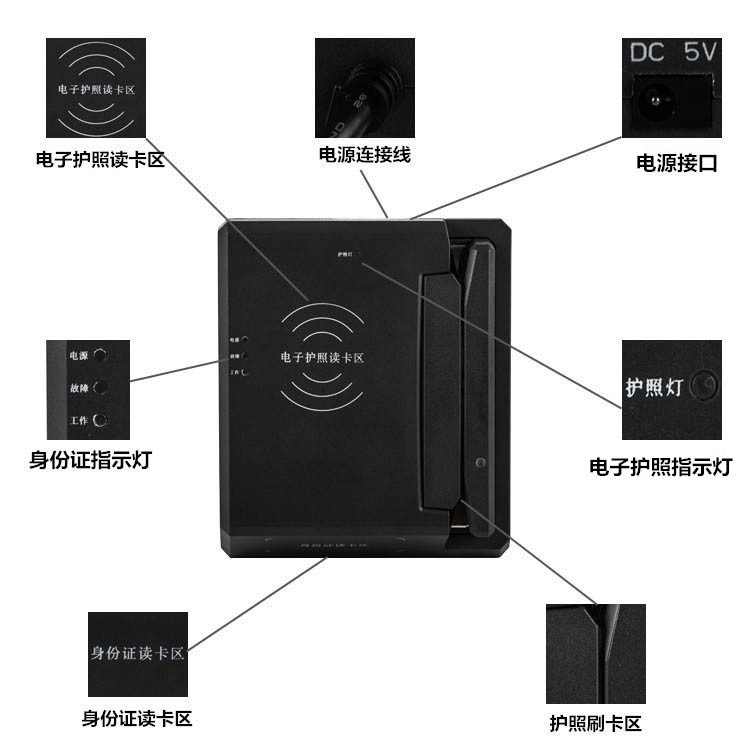 读取速度:电子护照:≦5秒; 读卡距离:0-3CM;其它证jian:≦3秒; 读卡距离:0-3CM。