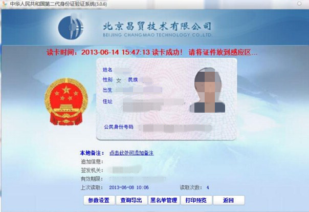 2、认证准确:可以通过随机解码软件,将身份证内的数字压缩相片还原成可视相片,进行“人证同一性”认定。