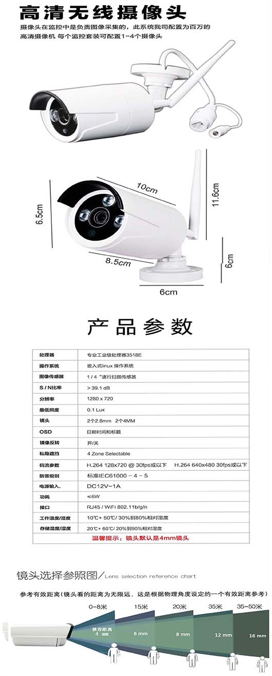 像索:200万 焦距:4mm 6mm 8mm 12mm