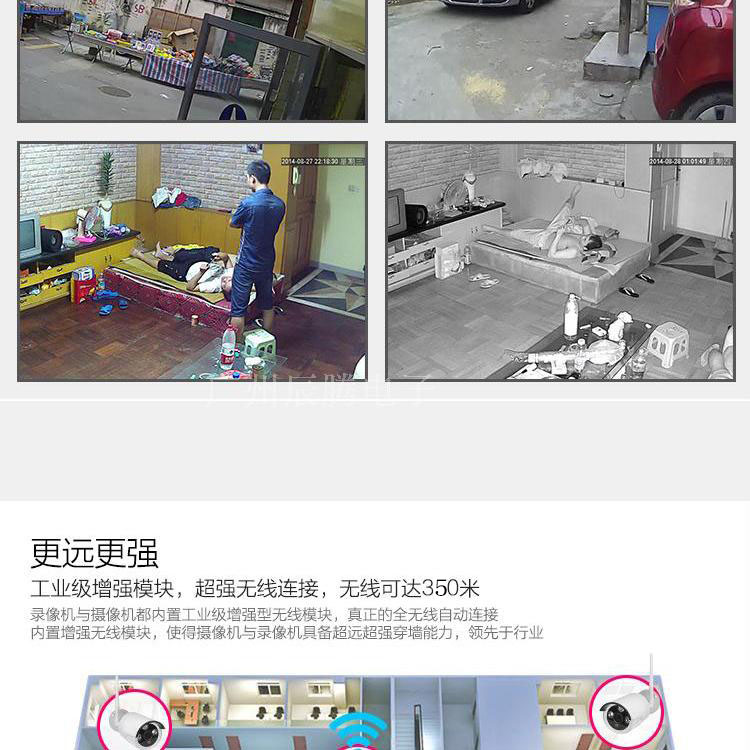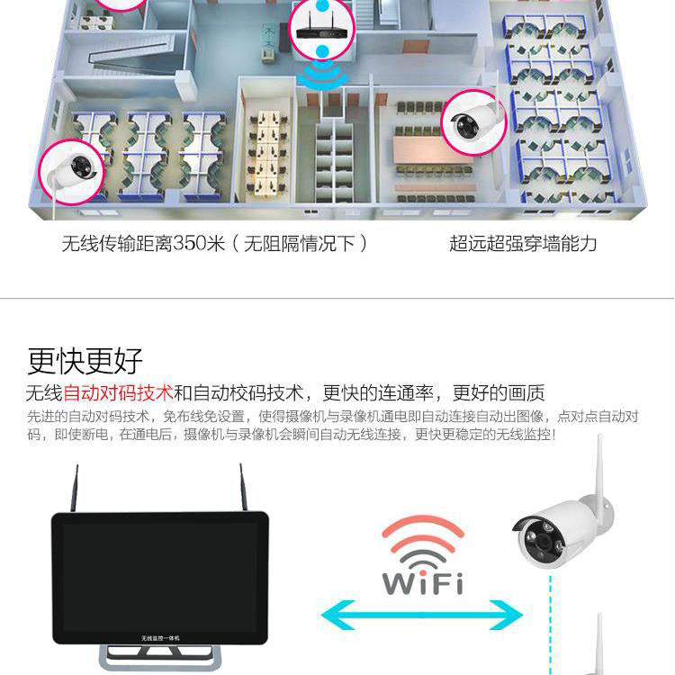 无线监控一体8路套装,适用于中小型工厂、超市、酒店、学校及家庭等多种场所。