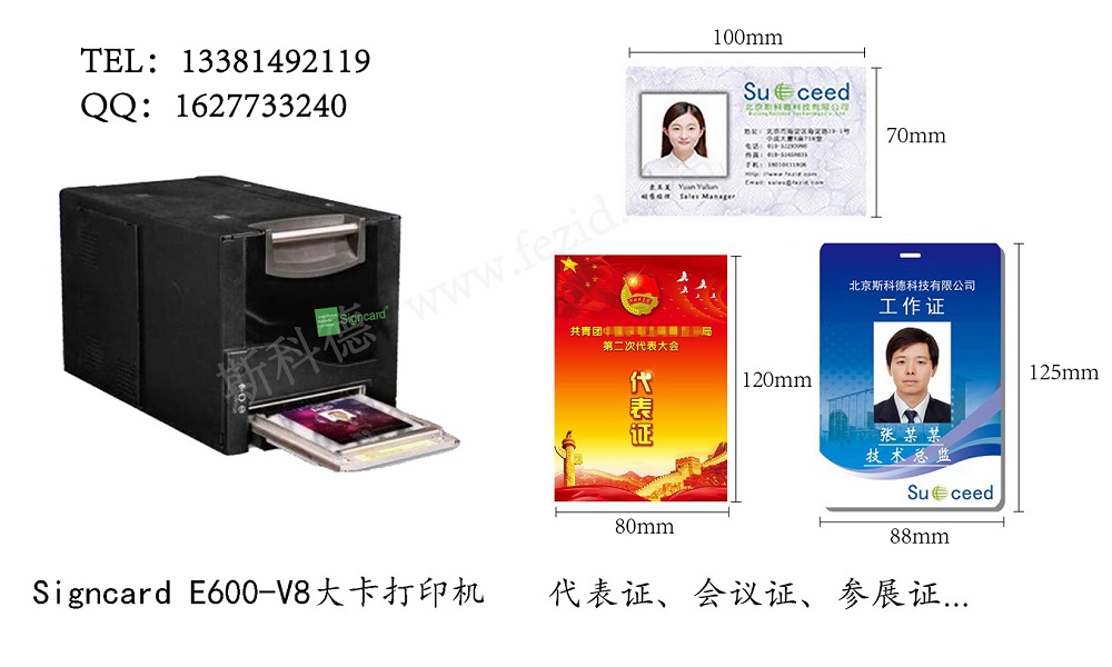 斯科德证件发行管理系统V9的证件发行模块可以满足用户自定义多种版式以及发行个性化证卡的需求。SIGNCARD制卡设备专用于制作多种大幅面证卡,主要幅面有:90*60mm, 100*70mm, 120*80mm, 140*100mm等。
