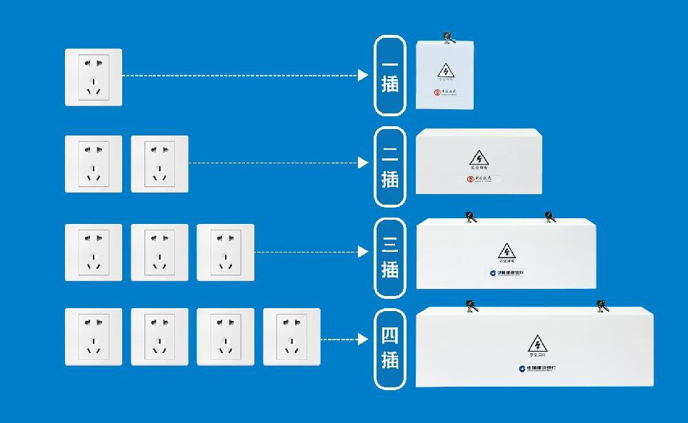 大厅自助设备区域采用自主研发刚性防护管理系统,产品具有防水防鼠防尘及带锁等特性,材料采用抗氧化、耐酸碱、防腐蚀的喷塑钣金,有效解决了线路杂乱、裸露线路及电源插座和信息点插座无保护、外接线板裸露容易引起小孩误摸触电等问题。