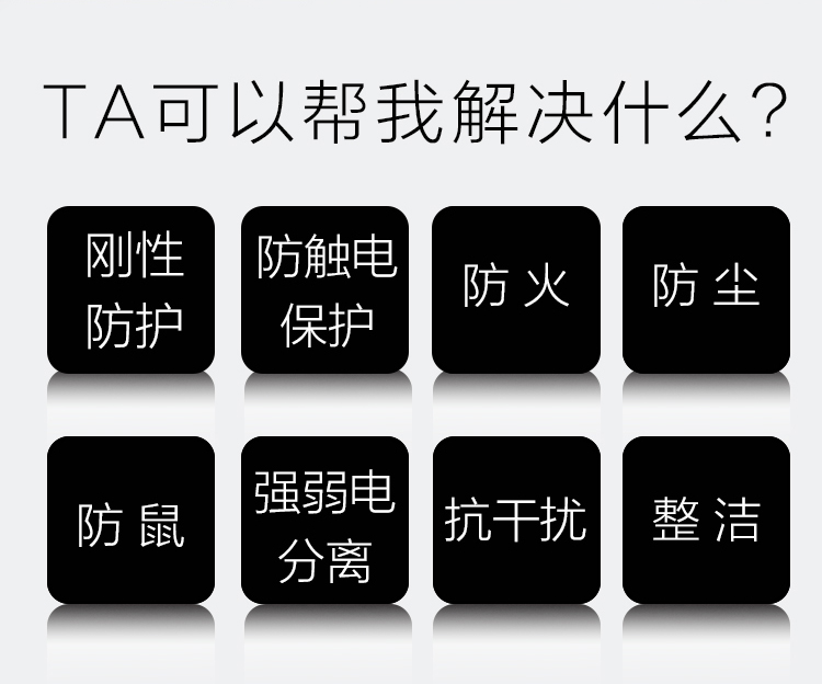 在6S标准管理下,所以在我们公司研发人员和多年经验的全力努力下,研发了刚性防护方案,解决了很多想解决却一直没有解决的问题。我公司为行业用户提供专业线路安全解决方案,其重要特点是:办公区域线路整洁规范,避免安全隐患,提升办公效率,扩大业务推广途径,增强行业竞争力。