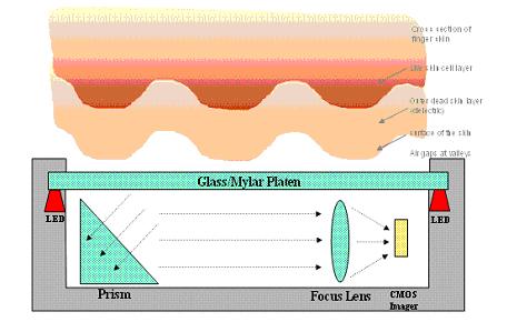 对于主动式采集的器件,会通过器件内部的控制电路发出探测信号,如光、射频、超声波,然后根据嵴与峪对探测信号的反馈值的大小,来形成指纹图像。