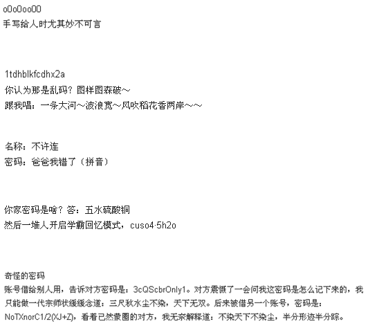 内心总是在OS:“作为一个追求简单自然的小清新,才不怕会有人盗取密码呢!因为世界很美好,我们不应该把别人想得太坏。”