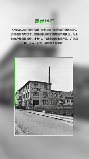 至今,Kaba已经度过了150多年的光辉岁月,它比以往任何时候都更加富有活力。 成功,必定是建立于明确坚定的企业愿景和“造福客户”的战略之上,我们绝不仅仅向客户提供安防解决方案,客户应从Kaba获得更多的附加价值。