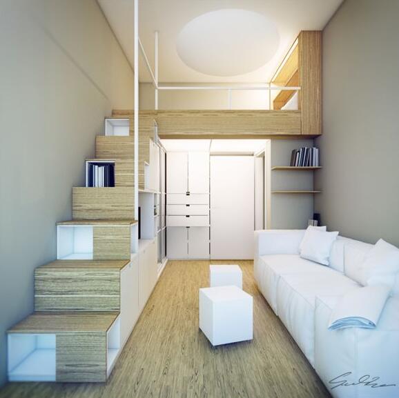 实际生活中,我们未必是30平方米只住一个人,甚至未必能拥有30平方米,这种条件,需要学会充分利用空间。国外许多小户型空间设计,采用loft的设计方式,将空间巧妙划分并充分运用。