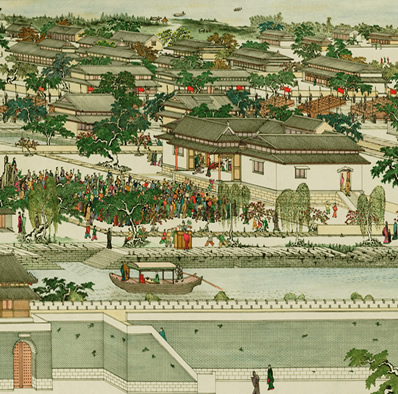 到了宋代,民间娱乐、商业中心和居民区融合,都会沿街设商铺,坊便瓦解了,代之以开放式街巷。