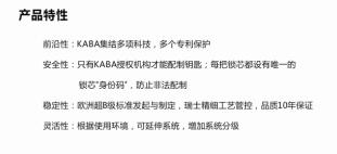 以KABA锁芯的安防级别,以及对钥匙配备管理的保密程度,以及钥匙系统的精密度,其不仅适合层级较多的大企业,也适合小企业的安防需求。