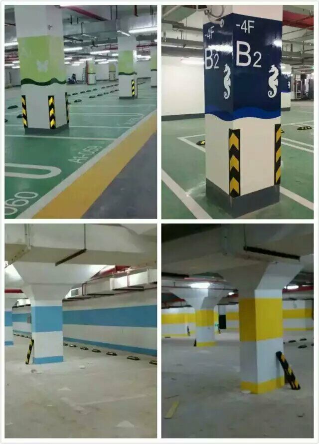2、安全防撞拦:高 130mm-150mm,置于停车位后线距前 1 米处。可有效的防止车辆在进入停车位时碰撞车后物体或墙壁。