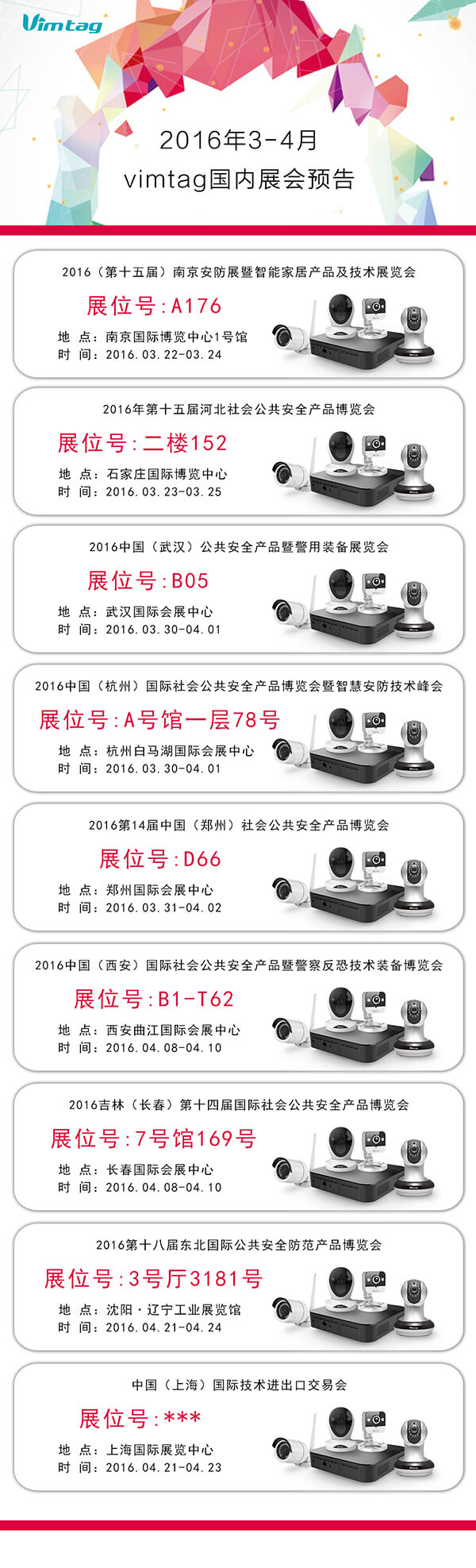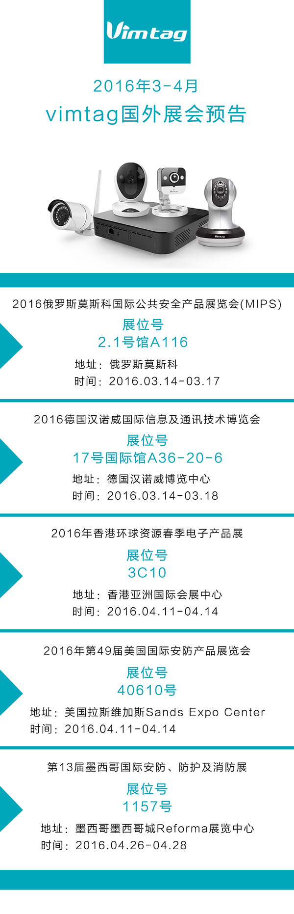 vimtag 3-4月展会信息 智能云摄像机引爆全球