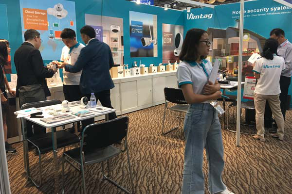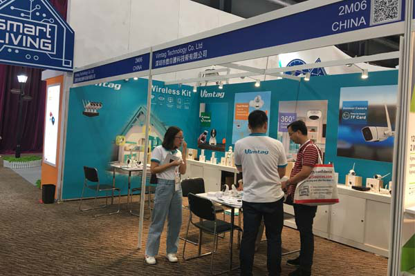 正是由于Vimtag智能摄像机拥有流畅大方的外观设计和具备多样化的功能,在展会上吸引了不少参与展会的客商和消费者前来询问和试用。现在的工作人员也在耐心地向参观者介绍产品的相关功能和使用方式。