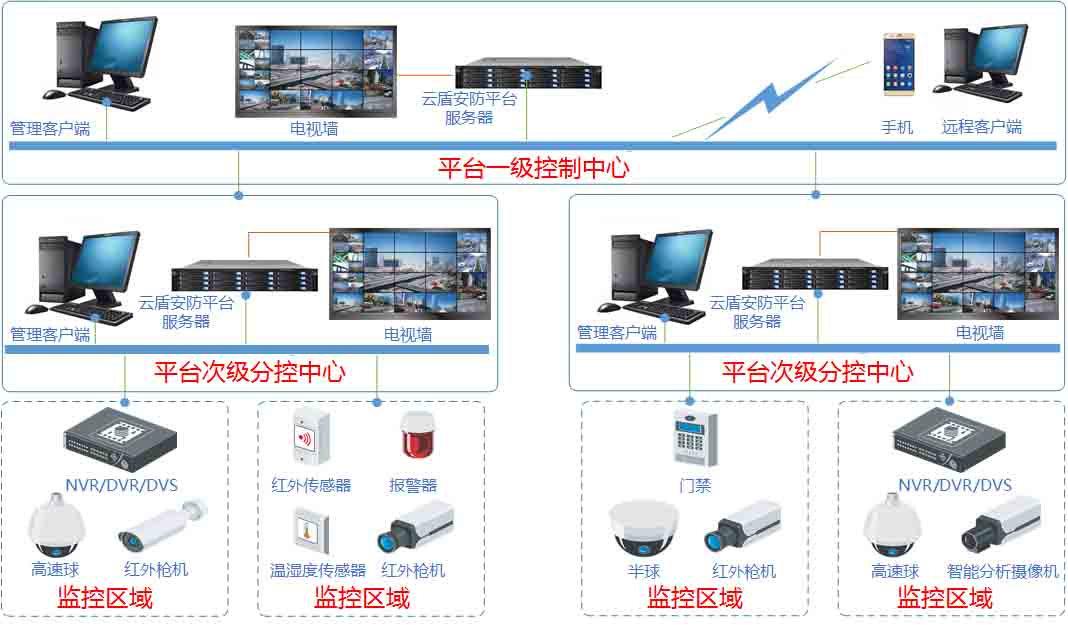 云盾安防平台系统是综合的安防集中管理平台软件,既可适用于大型项目的集中监控、分级监控管理平台(如平安城市、银行联网监控、石油电力行业联网监控等);又适用于中型项目的集中管理平台(如企业、工厂、学校、医院、小区等联网监控);以及适用于小型项目的小型平台(如楼宇、网吧、办公室、超市等)。