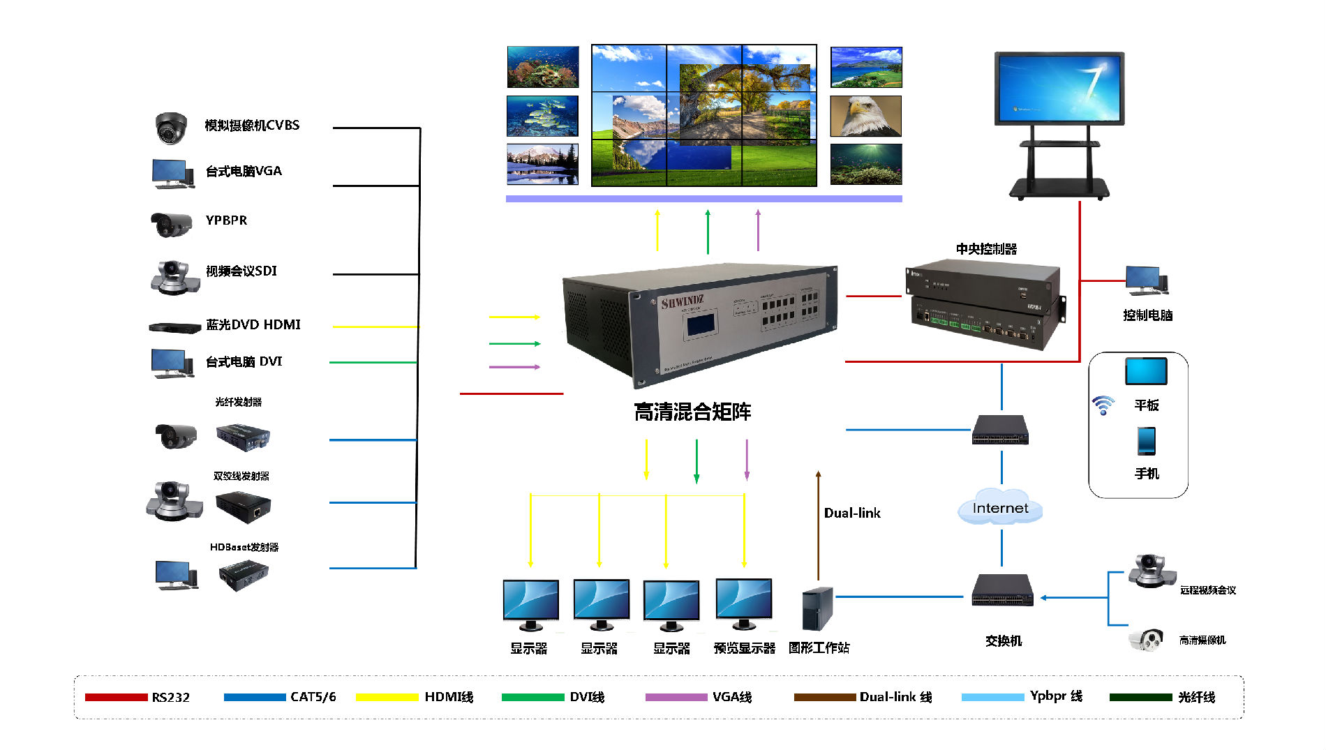 输出卡 | 单卡四路板卡;多种输出卡可任意组合:DVI、VGA、CVBS、HDMI、3G-SDI、YPbPr、Dual-Link IP HDbase-T、光纤等 | |||||
