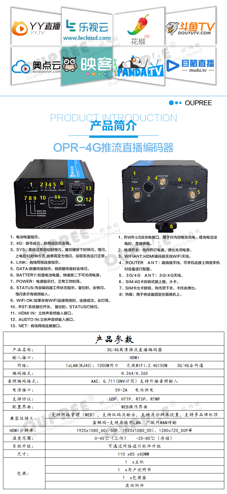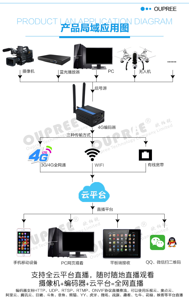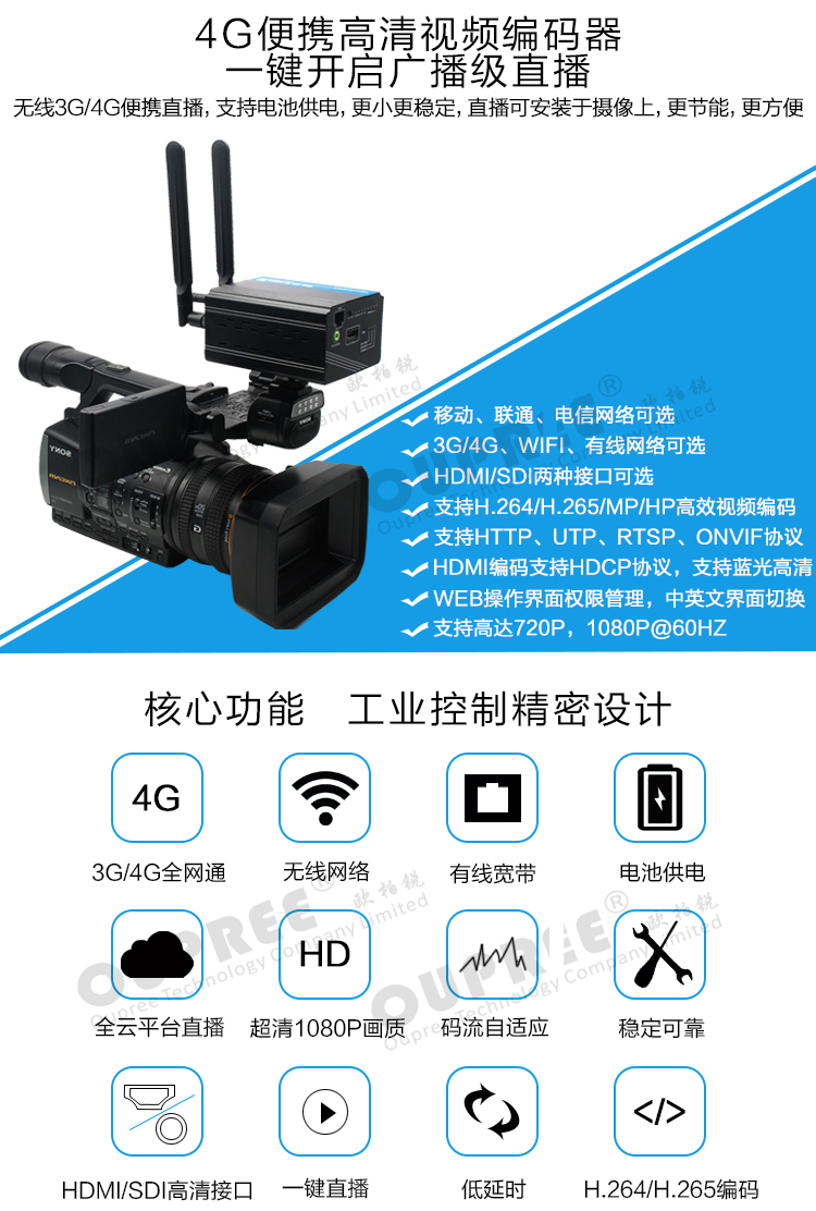 欧柏锐科技3G/4G高清推流直播编码器 Wifi视频编码器 微信直播