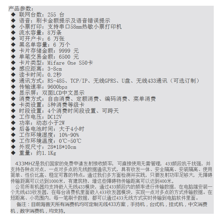 主营产品:消费机 售饭机 刷卡机 无线消费机