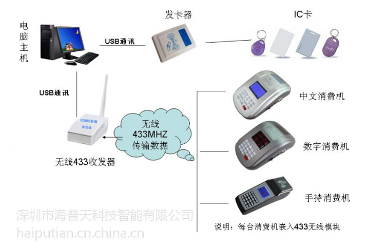 台式中文无线433消费机刷卡机餐厅游乐园消费刷卡机