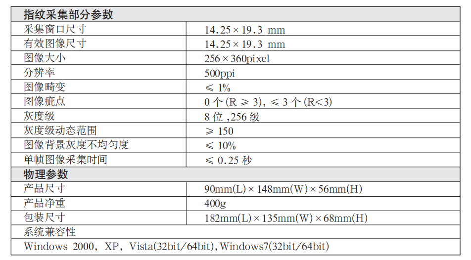 ◇ 指纹采集符合公安部《GA/T1011 2012 居民身份证指纹采集器通用技术要求》