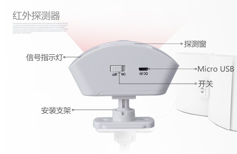 ●抗射频干扰 先进的信号分析处理技术,从设计上保证了产品的稳定性 ●通用5V电源接口兼容手机充电器