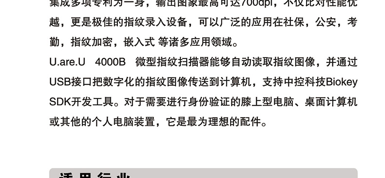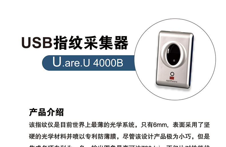 中控URU4000B指纹采集仪器 扫描仪指纹图片采集