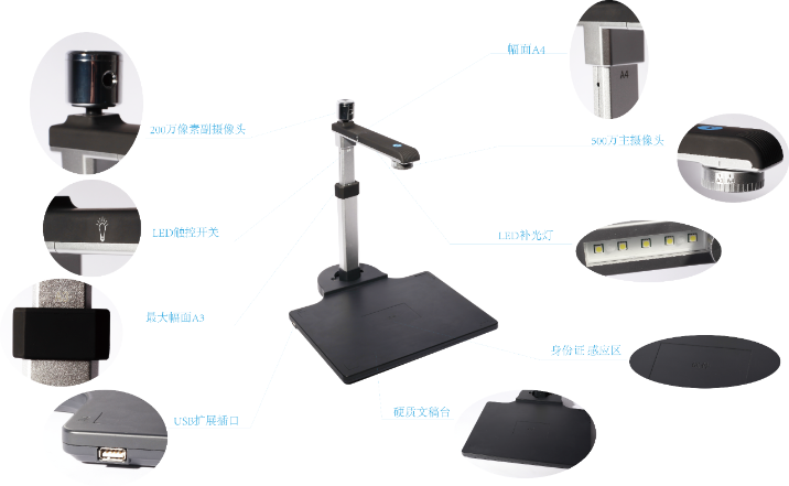 TR-M500系列柜面立式影像仪是造型精美、操作灵活方便的图像采集设备。可以从多个角度对不同纸质文件或实物进行拍摄,即时保存所拍的平面或立体图像。可满足凭证影像与客户影像同时采集,并可以实时传输影像数据流。