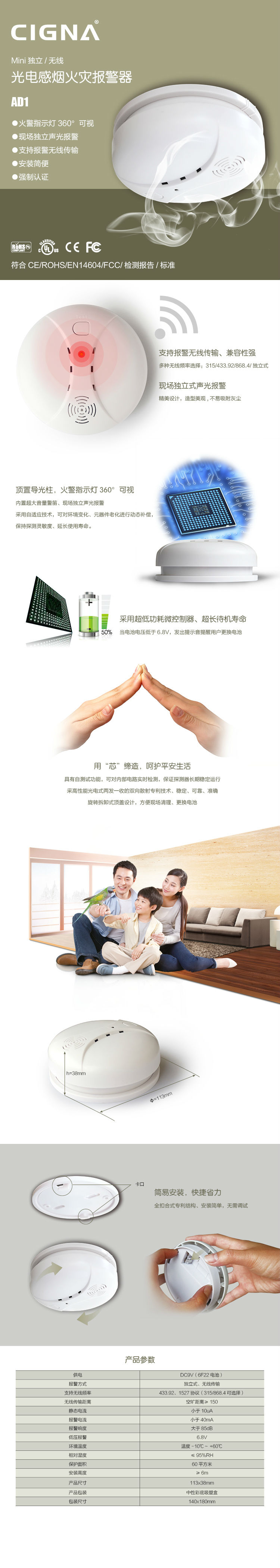 ◎Mini无线光电感烟火灾报警器;