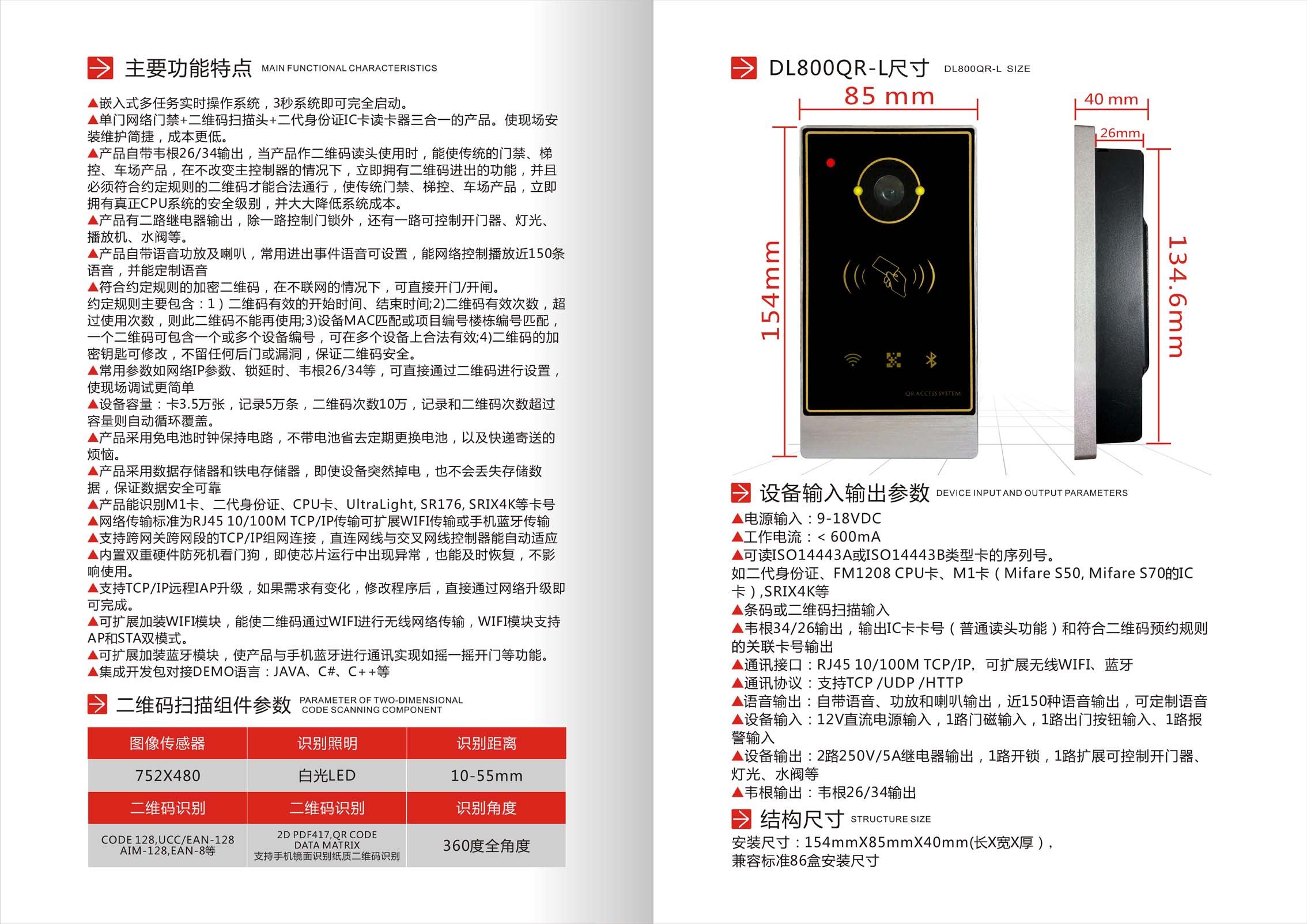 5. 设备容量:卡3.5万张,记录5万条,二维码次数10万,记录和二维码次数超过容量则自动循环覆盖。