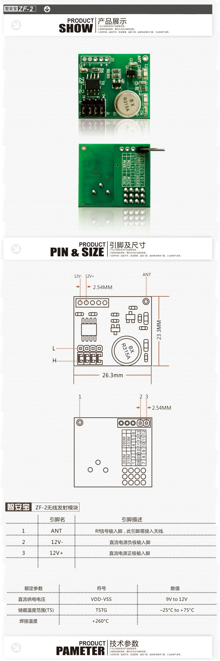 该模块核心电路采用RF12射频收发芯片,高稳定性.用SMT进口贴片元件以及声表面谐振器稳频; 体积美观。广泛应用在简易数据无线传输,无线遥控,防盗报警工业遥控,遥测,遥感;及各种低速率数字信号的传送;各种家用电器,智能玩具的遥控等场合。