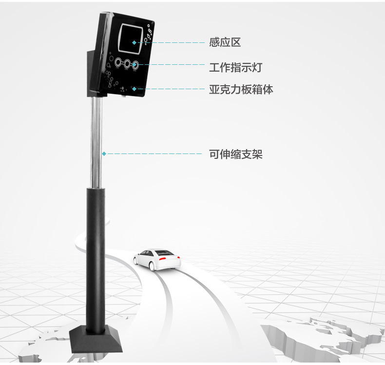 司机把蓝牙卡放在车挡风玻璃边,调好角度,车辆距离蓝牙读头3-30米内,激活蓝牙读卡器,读写器读取该卡的特征和有关信息,若有效,给停车场控制器传达指令,停车场控制器给道闸开关量信号,道闸升起,车辆感应器检测到车辆通过后,栏杆自动落下;若卡片无效或已过有效期,则道闸不起杆。(当车辆在感应线圈下时,自动道闸杆永不落下。则车辆感应器具有防砸车功能。)