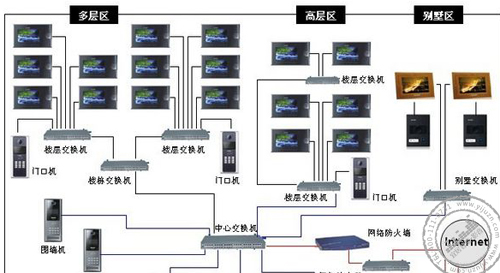楼宇对讲智能安防系统采用数字/模拟混合组网方式,是当前最经济实用的工程解决方案,在短期内会是大型社区楼宇对讲联网系统的首选。其解决了长距离传输以及模拟联网通道阻塞限制等问题,得到较好的音视频效果,相对于纯数字系统以及模拟系统,此种方式具有明显的价格优势;并且此种网络结构便于平稳扩容,联网性能稳定。