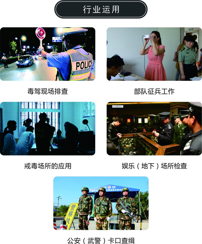 可应用于毒驾排查、戒毒场所、娱乐场所、边防卡口、部队征兵等