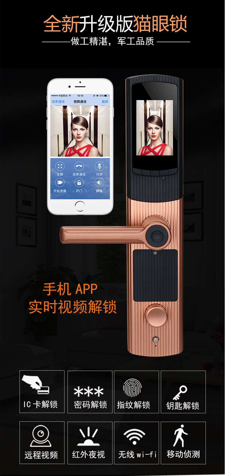 解锁方式:集刷卡+密码+指纹+机械钥匙+APP远程视频解锁五大解锁方式