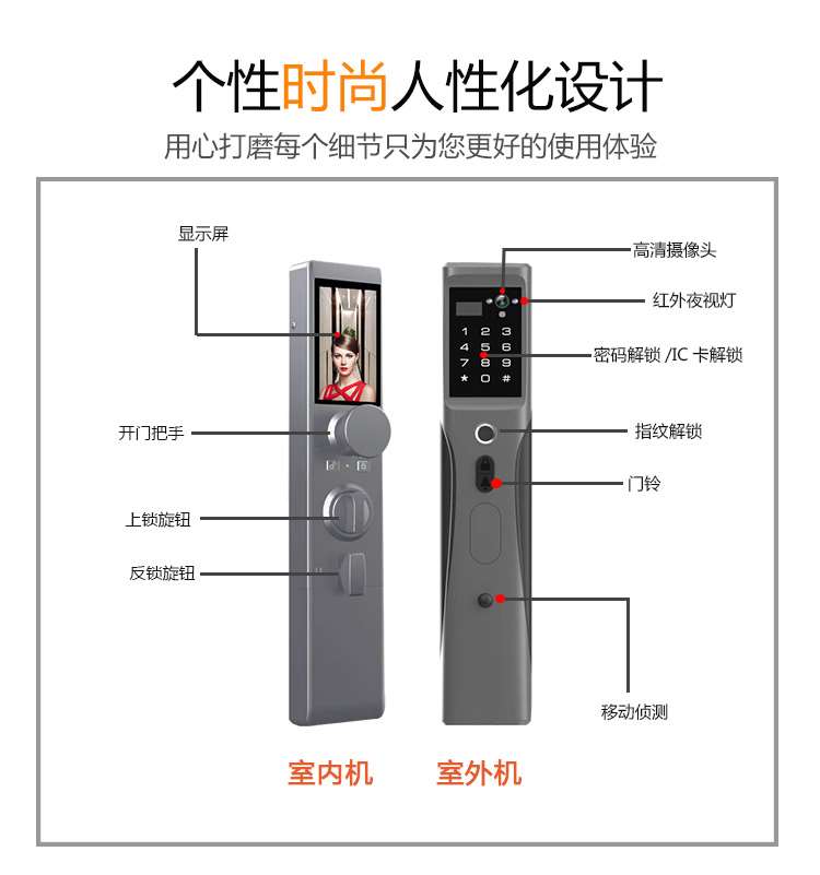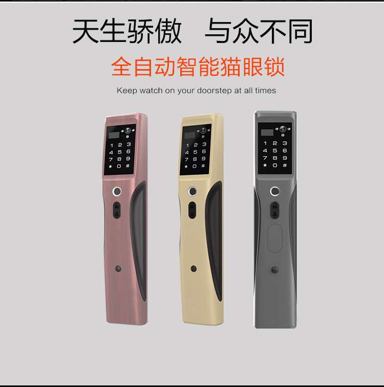 内置高清4寸高清显示屏,解锁记录、临时密码,移动侦测,智能报警,全自动等功能