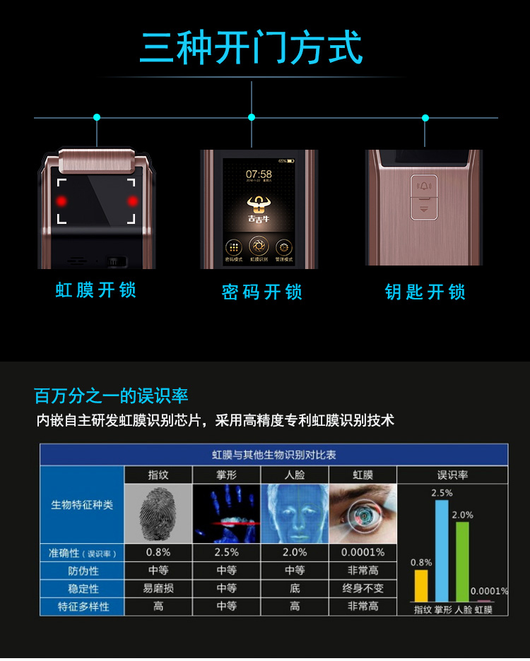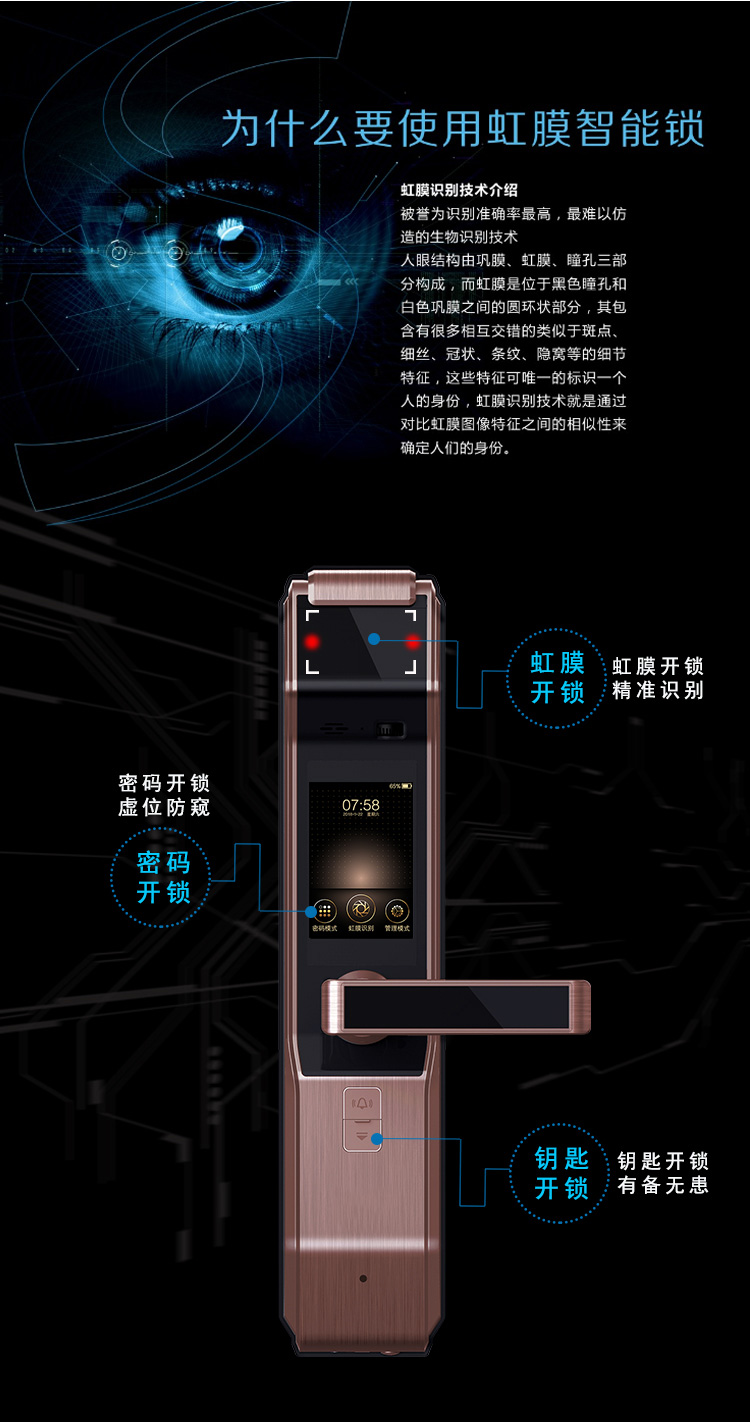 厂家直销新一代智能门锁虹膜锁更准确更安全